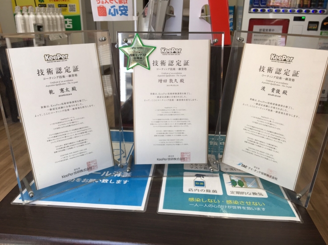 当店には、キーパーコーティング技術1級資格者2名、キーパーコーティング技術2級資格者2名が在席しております。