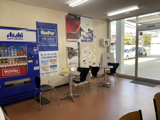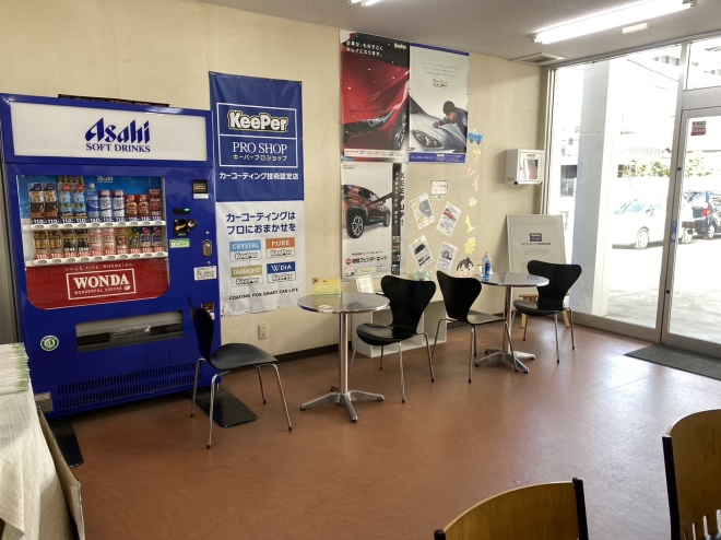 ①カーメンテナンス店に専用のコーティング場を併設する事により、土地代をおさえることに成功!